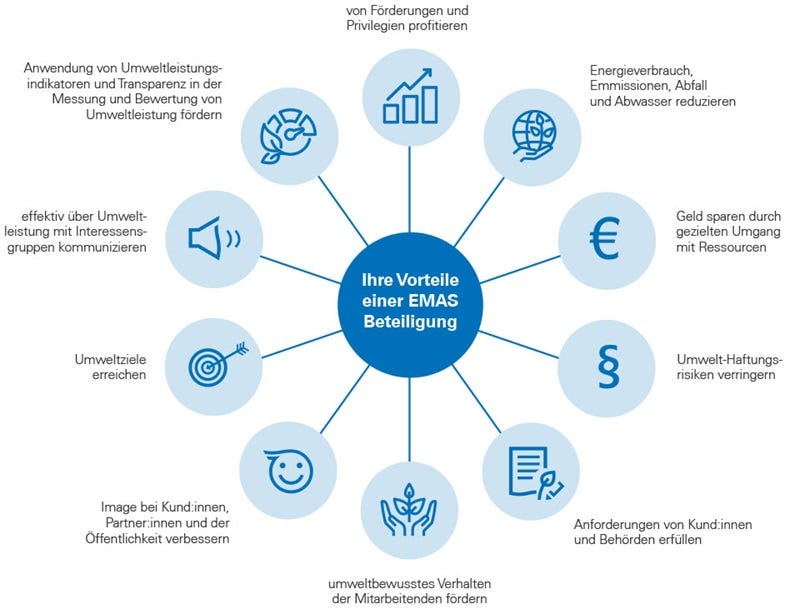 Mit dem europäischen Umweltmanagementsystem EMAS (Eco Management and Audit Scheme) sind Unternehmen in der Lage, ihre Umweltleistungen fortlaufend zu verbessern und diese aktiv und transparent an ihre Stakeholder zu kommunizieren. Das europäische Managementsystem erweitert die Anforderungen aus der ISO 14001 um besondere Aspekte wie beispielsweise eine Umwelterklärung. Der hohe Stellenwert von EMAS ist etwa daran erkennbar, dass es im Energieeffizienzgesetz als Alternative zu Energieaudits oder einer Zertifizierung nach ISO 50001 (Energiemanagement) genannt wird. Außerdem gelten für EMAS-Betriebe besondere Privilegien und Förderungen.