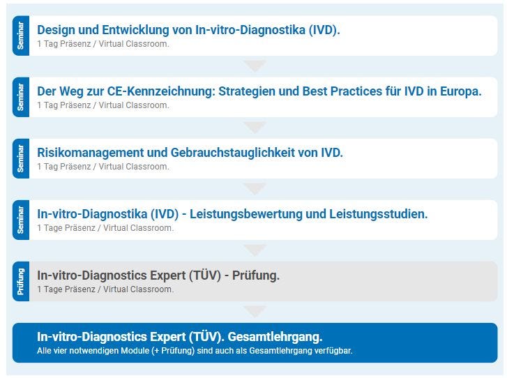 Sie können alle Module auch im Rahmen des Gesamtlehrgangs buchen, was Ihnen eine strukturierte und umfassende Ausbildung in allen relevanten Bereichen der In-vitro-Diagnostik bietet.